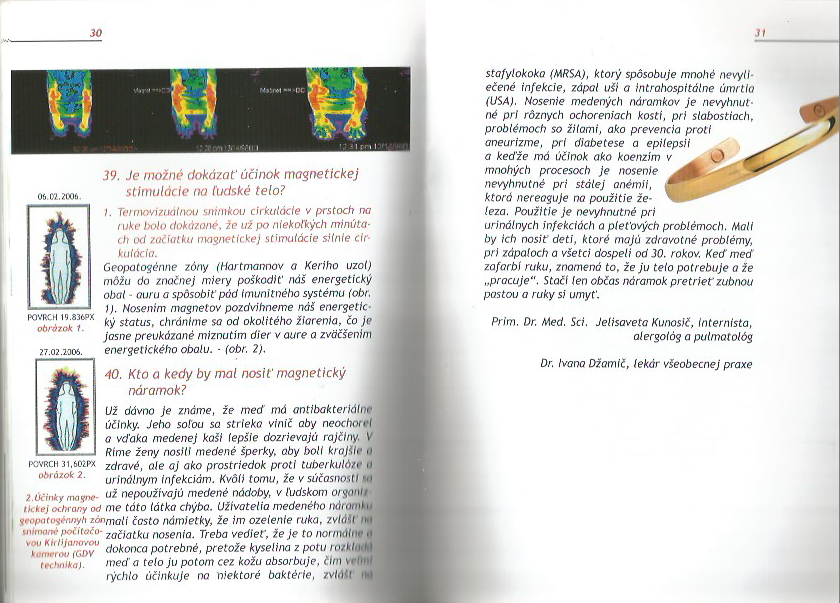 Slovensky. Vliv magnetů na živou tkáň, magnetická přitažlivost lidského těla a buněčný magnetismus; individuální citlivost na magnety, čištění špweků, ; určení anamnézy; příprava léčivé vody a olejů; podstata útlumové a racionální léčby; nezbytná opatření, jež je třeba při práci s magnety brát v úvahu; popis a příčiny různých nemocí včetně objasnění konkrétní aplikace magnetů; případové studie a odpovědi na nejčastější otázky