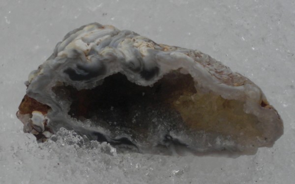 36 x 15 x 15 mm. Geoda s dutinkami vyplněná krystalky křišťálu, ametystu a gőtitu. Čistí tělo, zmírňuje kožní nemoci, odstraňuje apatii. Ovlivňuje vše na kořenové čakře, proto je schopen ovlivnit partnerství, nastolit klid. Dává odvahu a vytrvalost. A hlavně krášlí interiér a těší. Stále je v ní co studovat.