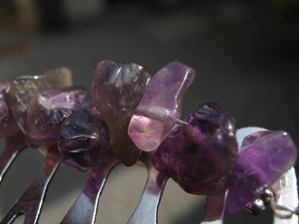 Cena za dva kusy, kameny jsou našívané. Mírní bolesti všeho druhu ve fyzické, citové i duševní oblasti a ovlivňuje zejména poruchy způsobené duševním přepětím, stresem a nezpracovanými negativními zážitky. Hřeben je proto velmi vhodný. A ještě udrží účes v plné kráse.