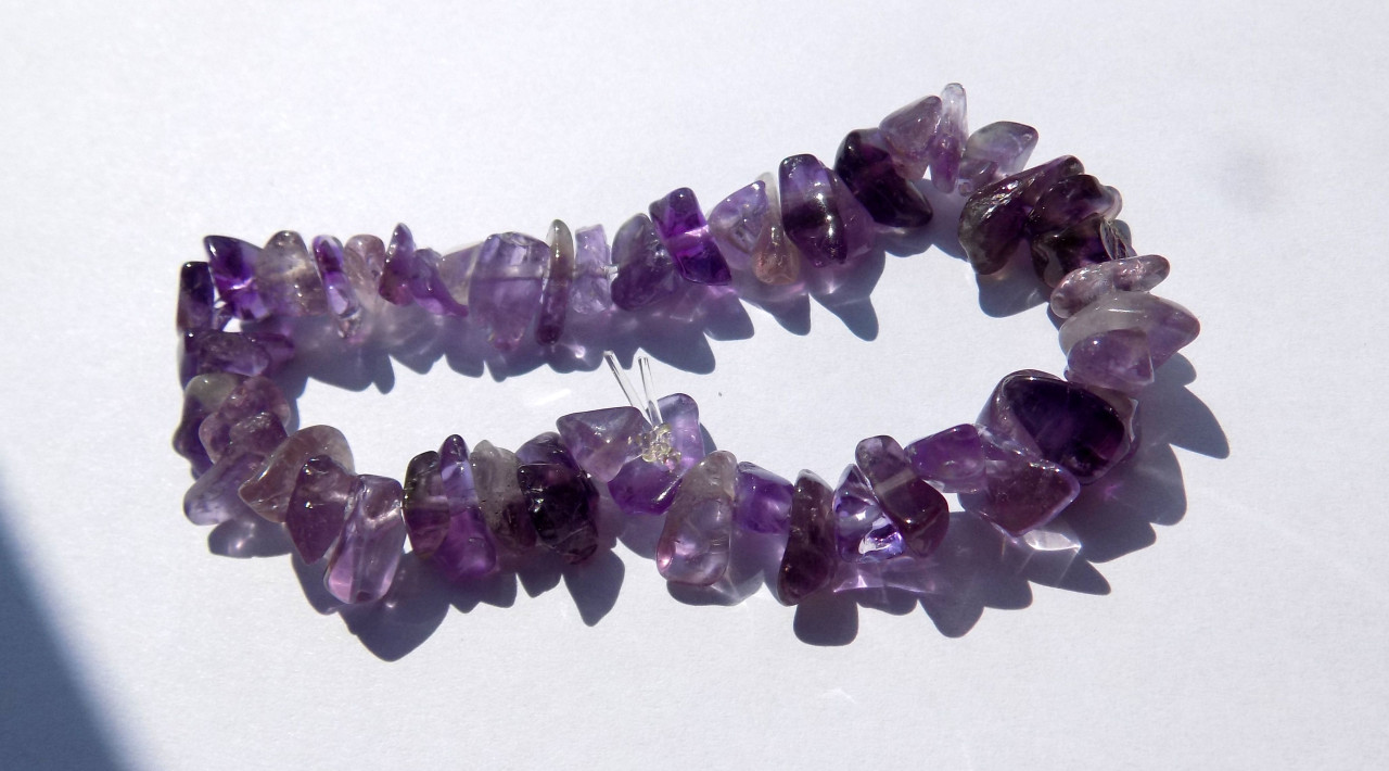 Roztažitelný náramek. Mírné vibrace ametystu uklidňují a navozují stav, v němž se rozplynou strach, starosti a zloba. Duše se tak může otevřít vyššímu poznání.