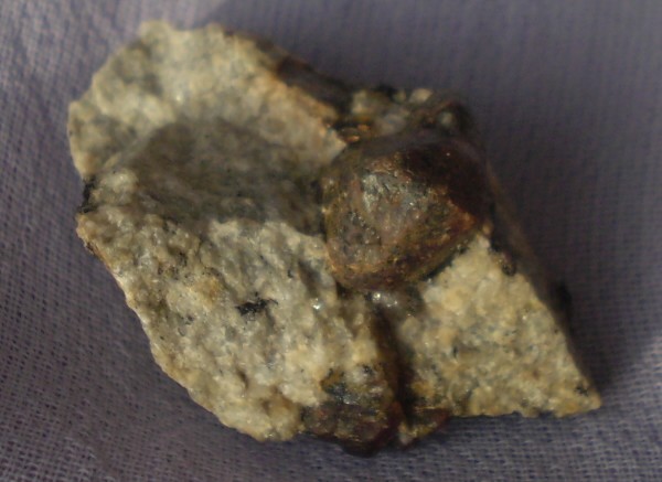 Česká republika, lokalita Žulová. Celková hmotnost včetně podkladu 7,2 g. Jedná se o hnědočervenou odrůdu grossuláru, která léčí různá ochromení s důrazem na nervy aklouby, aktivuje sníženou schopnost pohybového ústrojí, posiluje ochablé svalstvo.