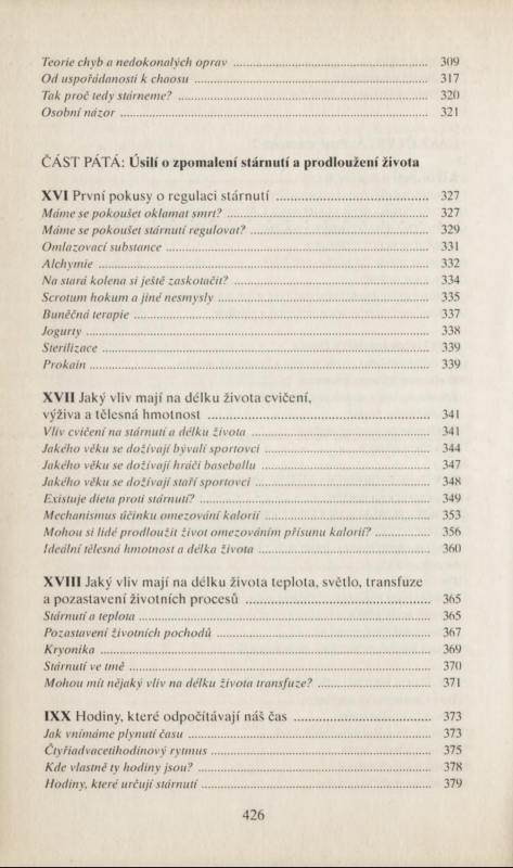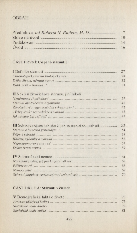 dalších oddílech knihy se dočteme o příčinách, projevech a důsledcích stárnutí
