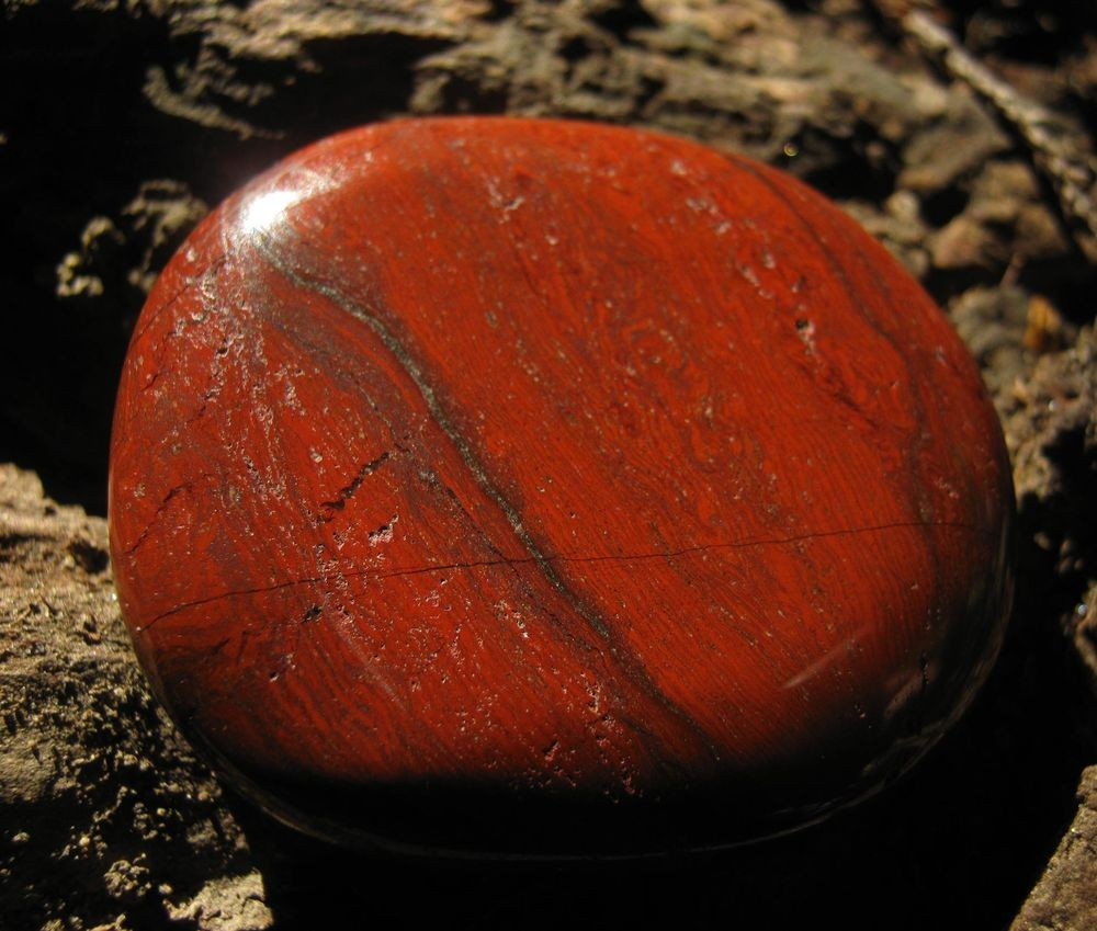 25,6 g, 3,9 cm. Jaspis červený posiluje a oživuje tělo. Aktivuje funkci jater, žlučníku, sleziny i slinivky, je schopen odstraňovat radioaktivitu z těla.