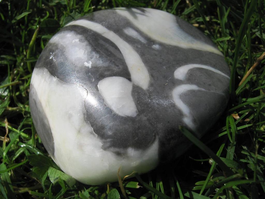 206,8 g, 7 x 6 x 3,5 cm. Černá a bílá, hmota a duch. Kámen vnáší do rovnováhy fyzično a duchovní hledání, drží na při zemi, harmonizuje prostor, dodává elán, stabilitu a důvěru.
