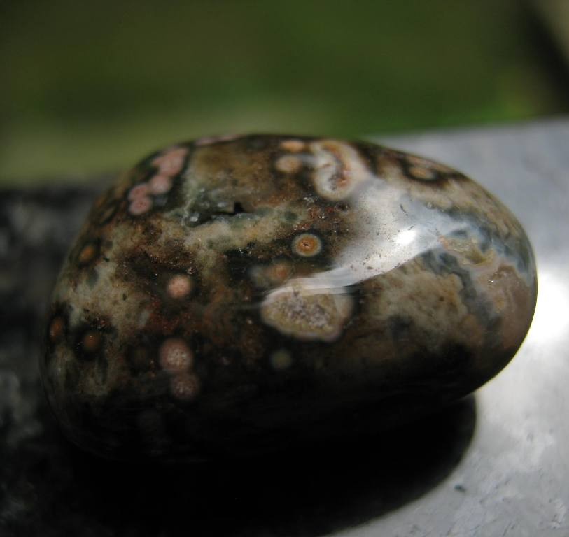 2,1 cm, příčně vrtaný. Jaspis oceánový učí žít v souladu s přírodou. uvádí do rovnováhy city a mysl, odstraňuje deprese, podněcuje kreativitu.