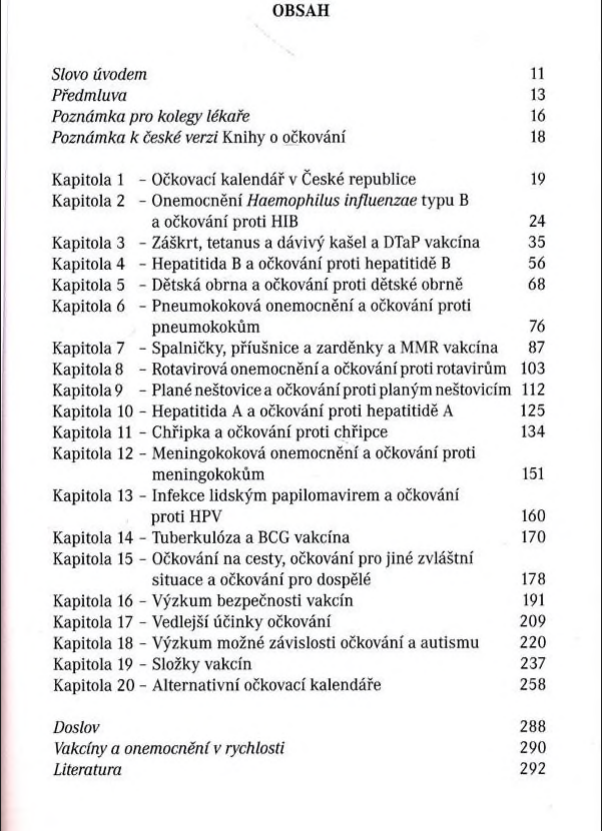 Kniha, jež vám pomůže při těžkém rozhodování, proti kterým nemocem a kdy nechat očkovat své dítě. Najdete v ní informace o průběhu, rizicích a četnosti výskytu jednotlivých nemocí, proti nimž existuje očkování, o složení vakcín a jejich možných vedlejších účincích.Jsou v ní rozebrány možné souvislosti očkování a autismu a kontroverzní otázky týkající se výzkumu bezpečnosti vakcín.