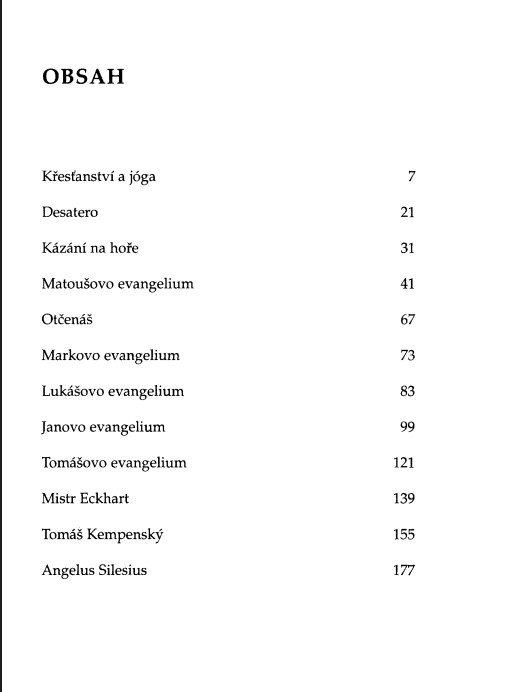 Kniha přibližuje základní křesťanské principy s použitím biblických i mimobiblických textů a srovnává je s učením jógy.