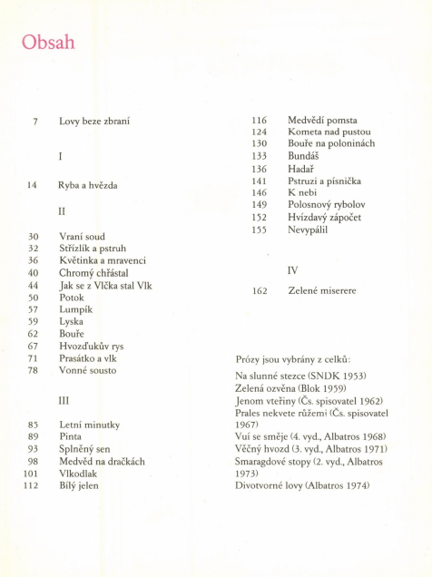 Kultovní kniha Jaromíra Tomečka, mistra české přírodní prózy. Reprezentativní publikace obsahuje nejlepší povídky a novely z obou oblastí autorovy inspirace - zakarpatské i moravské. Prózy byly vybrány z celků: Na slunné stezce, Zelená ozvěna, Jenom vteřiny, Prales nekvete růžemi, Vuísesměje, Věčný hvozd, Smaragdové stopy a Divotvorné lovy.