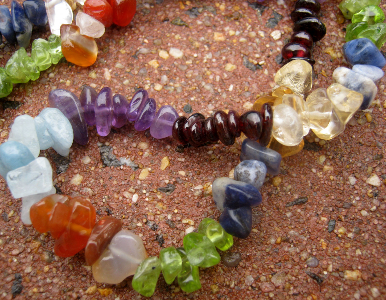 Vibrace kamenů jsou nasávány jednotlivými emergetickými centry. Silně posilující náhrdelník.