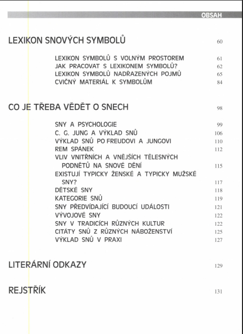 snů. Kniha také obsahuje lexikon snových symbolů. Kniha se zabývá otázkami, co