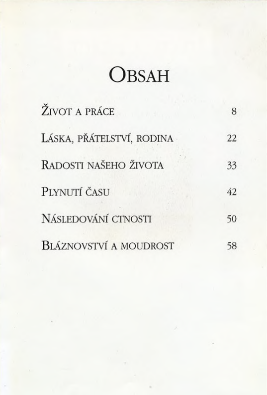 Přísloví jsou vybrána ze tří knih Starého zákona a uspořádána do tematických celků - práce, život, láska, přátelství, čas, ctnosti, moudrost atd.