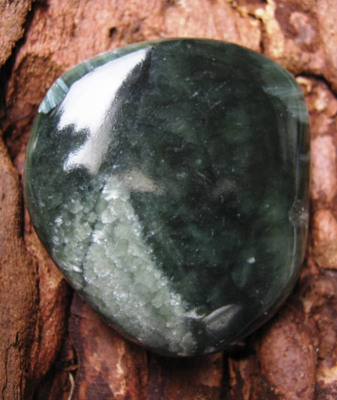 34,9 g, 4,6 cm. Kámen vyzvedává k vyšším vibracím, svojí hlubokou zelení překrytou mihotavými stříbřitými paprsky působí zejména na srdeční čakru. Účinkuje na nejjemnější úrovni, podněcuje k činnosti míchu, kterou spojuje s éterickým tělem. Uvolňuje svalové napětí v celém těle. Pomáhá při meditaci.