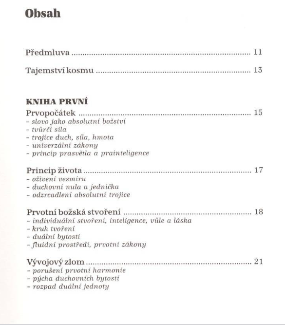 Neobvyklý pohled na vývoj kosmu i lidských bytostí v něm. Kniha spojuje popis událostí v rovině hmotné, energetické i duchovní. Odhaluje podivuhodné pozadí známých i neznámých epoch ve vývoji kosmu. Text vznikl zcela unikátním způsobem před více než 100 lety. A ještě si klikněte na kartu video. Uslyšíte pasáž z této knihy, ba ještě více. Liberec: Santal, 2010, 152 s., 2. vydání, brožovaná.