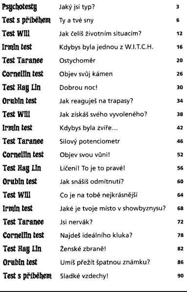 Sbírka testů, kterou sestavily autorky pro starší dívky. Díky nim dívky například to, jak čelí nejrůznějším složitým životním situacím, jak reagují na trapasy, jak získají svého vyvoleného nebo jak snáší odmítnutí. Podle zvoleného obrázku se dozví, jaké jsou, nebo třeba objeví svou vůni nebo kámen.