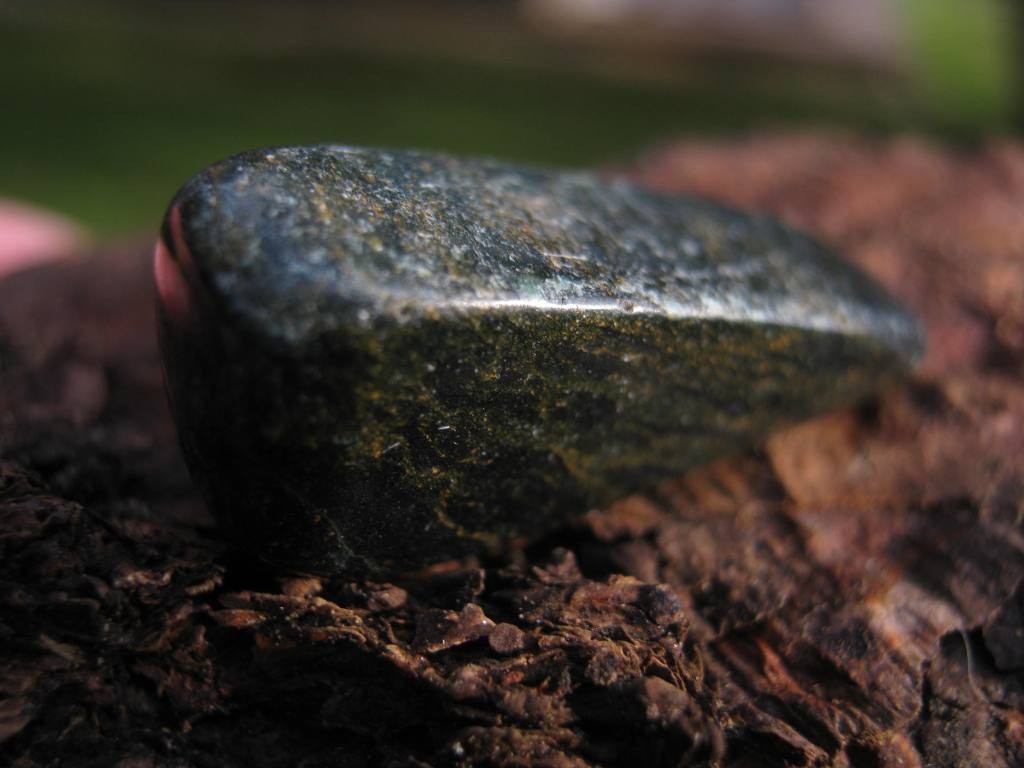 2,8 cm. Temně zelený kámen zvláštního lesku pocházející z Namíbie, proto se mu také říká jihoafrický jadeit či africké zelené zlato. Stabilizuje první čtyři čakry. Napomáhá stabilitě a pevnosti v postojích. Ve fyzické rovině čistí krev, odstranění toxiny a zmírňuje pohlavní poruchy. Zvyšuje odolnost proti infekcím a zmírňuje alergické stavy.