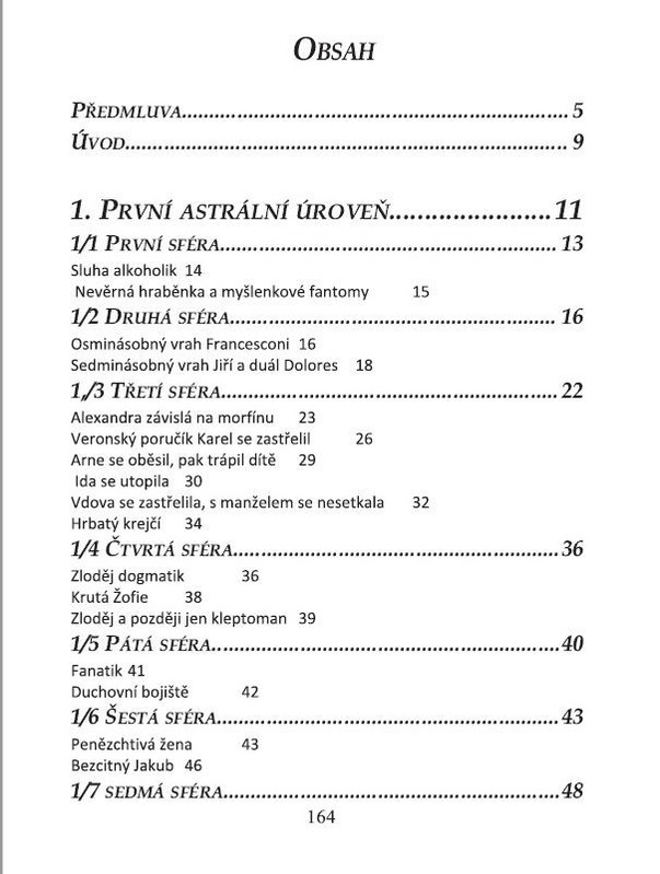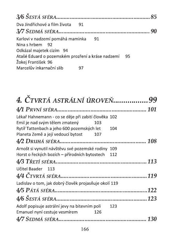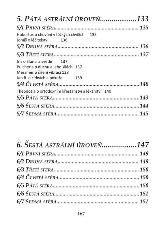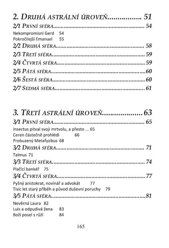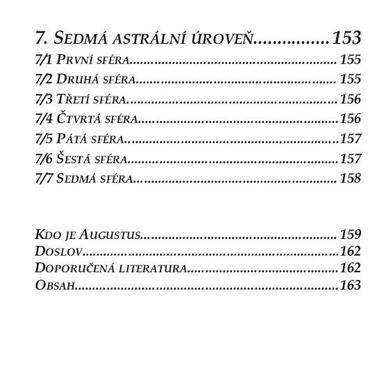 str. 48: Důsledkem prohřešků a nevázanosti klesli tak hluboko, že ztratili duchovní vlastnosti a žijí život podobný životu zvířat. Pokud se ještě nedokonalý duch nechá ovlivnit negativními silami a zlem dříve, než se vyvine jeho chápavost a dokončí výchova, vznikne z něj člověk podobný zvířeti, který je nevzdělaný, surový. Po smrti se dostane do této sedmé sféry – 1/7. Bytosti klesly již ve své pozemské existenci na divokou zvířecí úroveň, kterou dodržují i v záhrobí. Zde však nemohou vraždit, ale jen poškozovat a zraňovat ostatní. Pociťují fyzickou bolest, protože stavba jejich těla je hodně zhmotnělá. Jakmile se v nich uchytí víra v Boha a lásku, inkarnují se mezi vzdělanější národy na Zemi. Tam mají poznat lidskou morálku a být v ní vychováni. Jejich zrození na Zemi nebude ještě dokonalé, často se stávají vícenásobnými vrahy, lupiči a zhýralci. Mnohá média popisují život v této sféře v domnění, že se dostala k nejvyšší spiritualitě. Skoro všechno, o čem hovoří, lze omezit pouze na první astrální úroveň s jejími sedmi sférami. Jen velmi málo z nich má možnost se dostat výš, do dalších sfér.