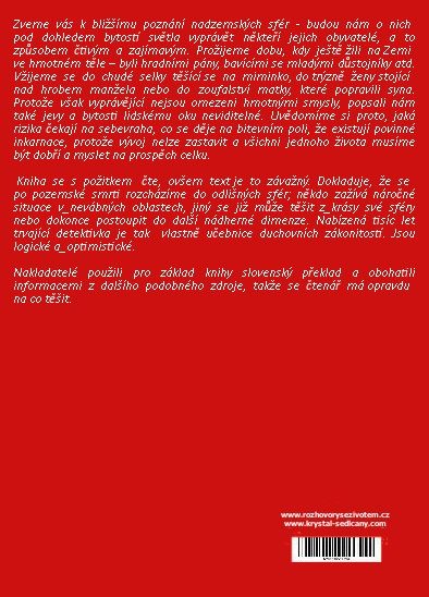 Alexandra závislá na morfinu, 23, 1/3 Vždyť jsem byla bezproblémová. Do doby, než mi dal lékař morfium… Ty jsi však bolest, která na tebe přišla, nedokázala snést. Jejím snášením bys duchovně sílila a rostla…. Neměla jsem čas stonat. Těžké nachlazení mi bránilo, abych se účastnila plesů a společenských akcí. Musela jsem proto použít rychle působící lék, a to byly ony injekce. Myslíš, že ve vznešené společnosti má člověk čas být nemocný? Během taneční zábavy jsem si rychle vstříkla dávku a opět jsem byla jako znovuzrozená… Bolest, kterou chudá žena snese bez reptání, jsi ty nechtěla přetrpět. Chudému je čas dražší než bohatému, protože si musí vydělávat na chléb. Médium: Ale Alexandra nespáchala přímo sebevraždu. Tak proč je v této sféře? Kateřina: "Její život byla pomalá sebevražda…. Všichni, kteří si svůj život zkrátí v důsledku slepé nerozvážnosti - alkoholici, narkomani -, musí touto třetí sférou projít.